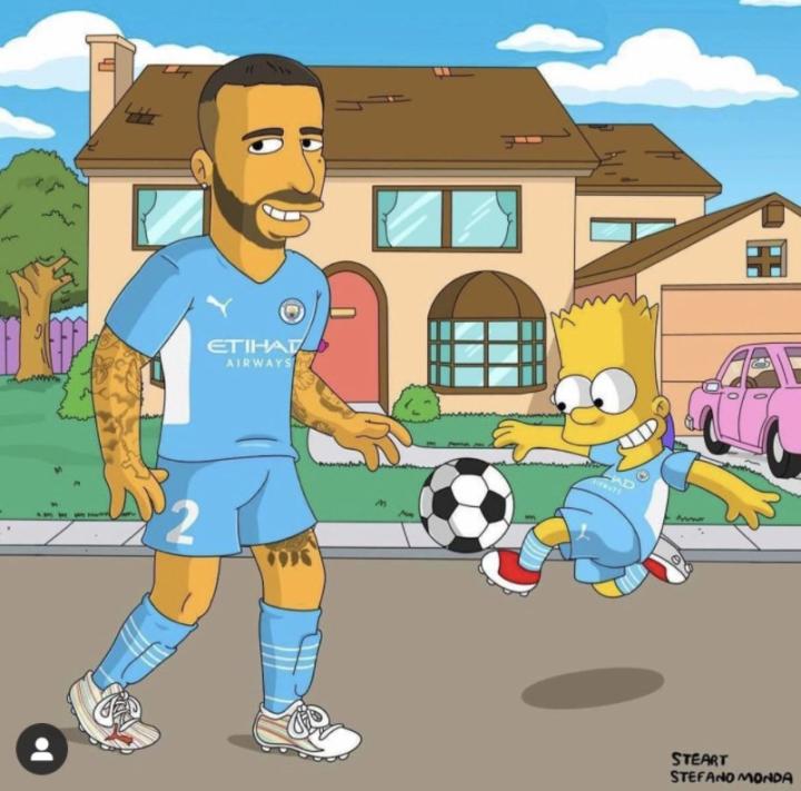 沃克在社交媒体发表了一张辛普森踢球的漫画,其中他自己也被换成了漫画形象,而辛普森穿上了曼城的球衣。