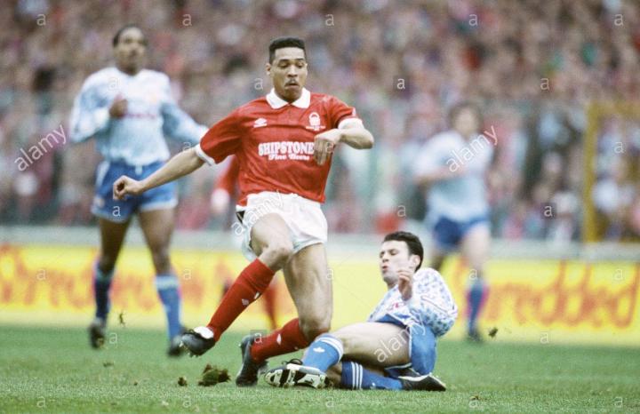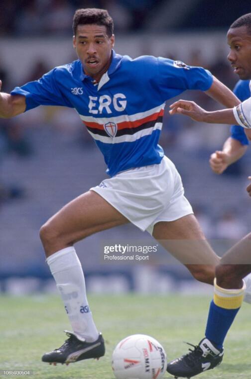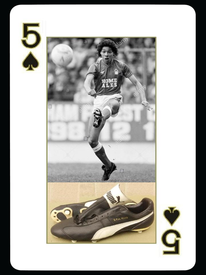 下面这位球员可能很多人不熟悉,他被认为是上世纪英格兰最出色的黑人后卫,也是里奥费迪南德的偶像,他叫德斯.沃克。身体强壮,速度快,擅长防守和补位,当年在英格兰还流行一首歌《你永远过不了德斯-沃克》。他的巅峰时期效力于诺丁汉森林队,1988年成为英格兰国脚,参加了1990年世界杯,当时沃克一直使用puma球鞋,下面这king是spa版本,加强了后跟的减震和保护。1992年欧锦赛后,沃克加盟意甲桑普多利亚,但是因水土不服只在意甲混了一年,此后他转会谢菲尔德星期三,表现依旧出色,但因为在1994年世界杯预选赛和荷兰队的生死大战中拉倒奥维马斯送点而断送了国脚生涯。