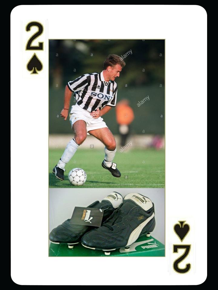 今天介绍的最后一位puma代言人是大名鼎鼎的法国主帅德尚,他虽然在足球领域取得成就极高,却是个非常低调的人,长相也比较平庸,并不适合做代言人,所以他选择了低调的puma king作为自己的战靴。在马赛时期,老板塔皮是adidas的大股东,所以马赛俱乐部全队上下都是adidas装备,在转会尤文图斯后,德尚开始穿puma 球鞋,作为中场工兵,马王是最佳选择。但是此时的法国队也被adidas打包赞助,所以德尚在1996年欧锦赛和1998年世界杯穿的都是adidas球鞋。夺得世界杯后,adidas在法国队的垄断才结束,此后德尚在国家队也可以穿puma king球鞋,并且在2000年获得了欧洲杯冠军,完成了职业生涯的荣誉大满贯。