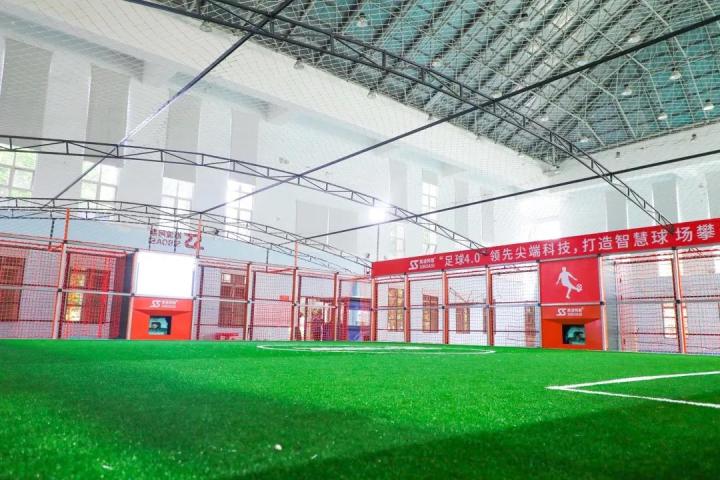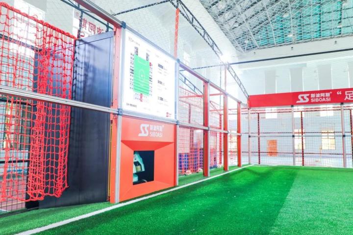 训练馆安装有一块大屏,实时显示射中率等信息,供训练人员参考。全场四个顶角配备有高清摄像头,捕捉球员的运球路线、射门角度、位置、运动距离、能量的消耗,可以根据球员的素质设置合适的训练模式。训练结束,自动生成各项评测数据,为球员发展提供更为精确的训练和指导。