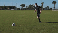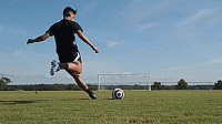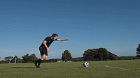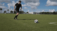 助跑,把我们的立足脚稍微放在球的前面一点。