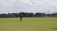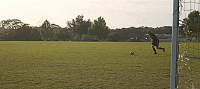 有时候我们可以简单的用我们的脚内侧将球传入网里。