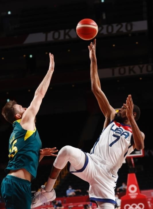 在今天进行的东京奥运会男篮半决赛中,美国队以97-78逆转澳大利亚队,杜兰特得到23分,成为美国男篮首位奥运生涯总得分超过400分的球员。