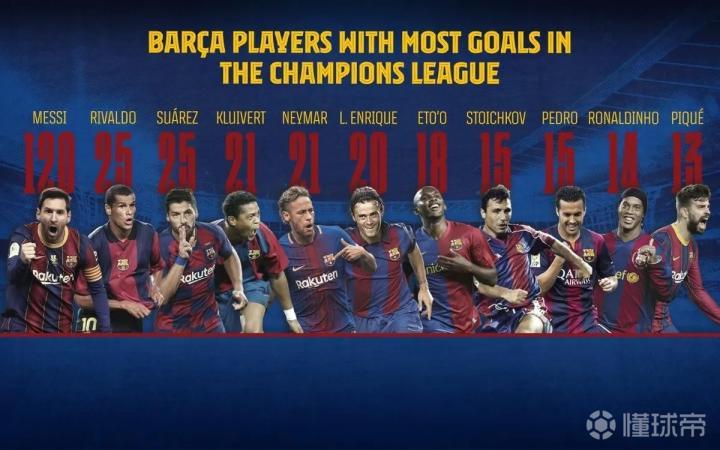 • 巴萨球员欧洲冠军杯历史最佳射手。他有120个进球,比他身后的名字多了近100球。