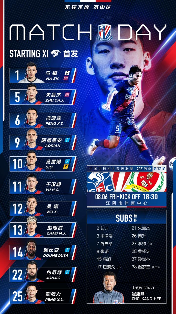 上海申花足球俱乐部北京时间8月6日18:30,2021赛季中超联赛第十二轮上海申花对阵长春亚泰的比赛在江阴市体育中心打响。最终全场比赛结束,上海申花1-2负于长春亚泰。