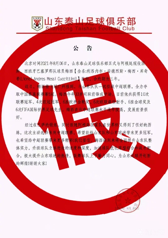 【山东队辟谣梅西加盟传言:不属实,请球迷朋友不信谣、不传谣】