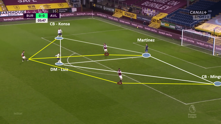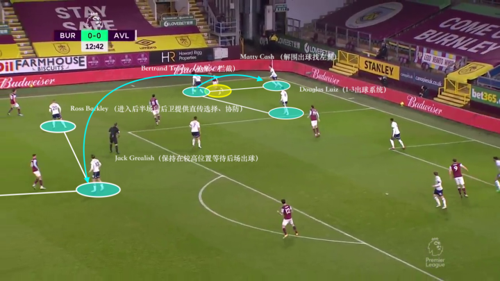 阿斯顿维拉在球队推进的速度上一直位列英超前列,但这并不意味着球队的后场出球都是以简单粗暴的一脚直传给到前场。球队后场向中场保守的短传传递也很好的向我们展示了维拉中场在球队进攻的重要作用。