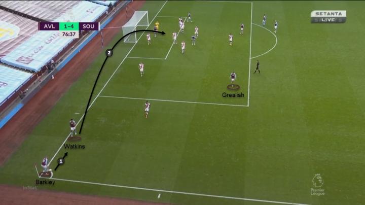 格拉利什在本赛季平均每90分钟短传0.8次,平均每90分钟完成2.25次长传。我相信大家对这个数据都有些吃惊,因为阿斯顿维拉本赛季一直是一支控球率和传球数字/成功率联赛前列的球队,而大家可能对格拉利什的第一印象是一个中路组织者,而非一个边锋球员。不过从3-4南安普顿和3-1富勒姆的一些典型性的比赛来看,球队进攻表现最突出的是在比赛的最后30分钟当中。