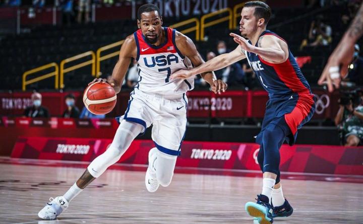 不过这也是为了方面美国的球迷看奥运决赛,毕竟时差所在。经过一番激战,美国男篮以87比82击败了法国,拿下奥运金牌。这是美国男篮连续第四个奥运金牌,他们在2004年的雅典丢了金牌之后就一直夺冠。这也是杜兰特的个人第三块奥运金牌,最近三届大赛只要有他在就一定能夺冠。这场比赛之前,杜兰特刚好跟布鲁克林篮网队谈妥了一份四年高薪提前续约,于是人逢喜事精神爽,在上半场就狂砍21分,帮助美国男篮占据比赛优势。
