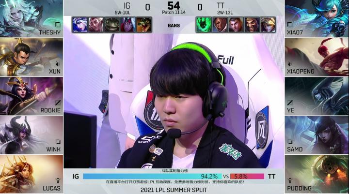 IG首发:TheShy、XUN、Rookie、Wink、Lucas