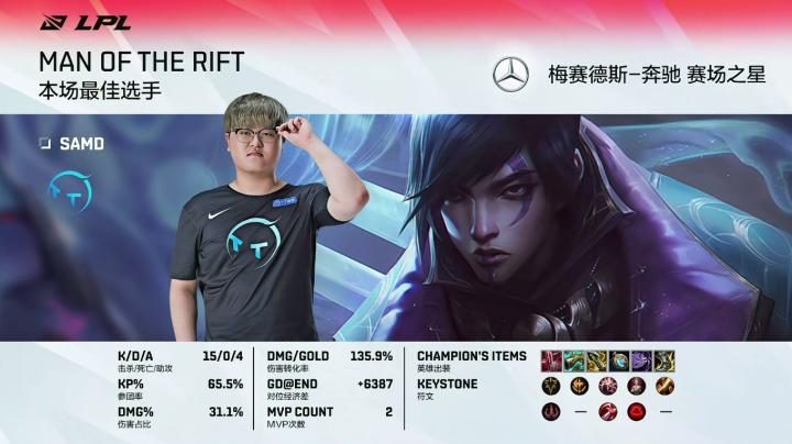 MVP:15杀0死全场最高输出的TT.Samd(厄斐琉斯)