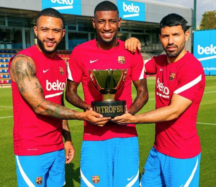 明日比赛见!巴萨三名新援展示甘伯杯冠军奖杯LaPulga @懂球帝2021-08-07 19:36甘伯杯将在明日开战,今日阿圭罗、德佩、埃默松这三名巴萨新援展示了甘伯杯的冠军奖杯。北京时间8月9日凌晨3:30,巴萨男足将在甘伯杯中对阵尤文男足,双方女足的比赛则是在0点进行。赛前一天,阿圭罗、德佩、埃默松展示出了甘伯杯冠军奖杯,他们三人都入选了大名单,有望在比赛中登场。展开更多