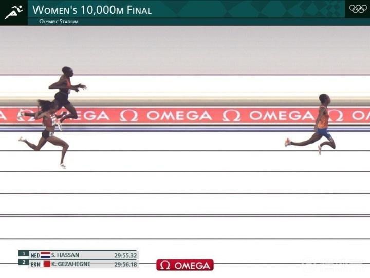 在今日进行的女子10000米决赛中,荷兰选手哈桑凭借最后时段的冲刺,以29分55秒32的成绩微弱领先于第二名的巴林选手卡尔基丹(29分56秒18),夺得万米金牌!