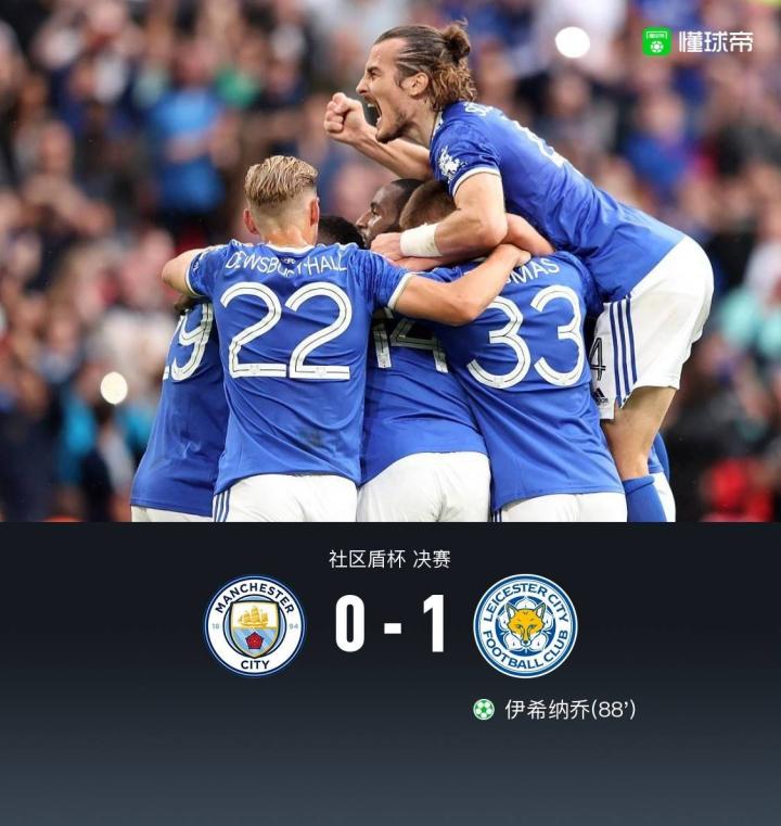 莱斯特城1-0曼城夺社区盾杯冠军,伊希纳乔点射绝杀