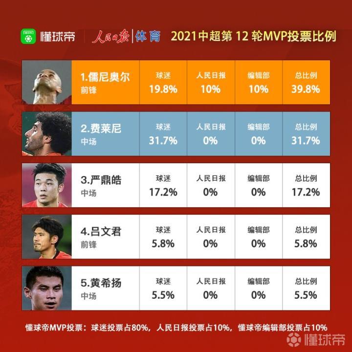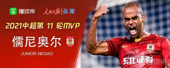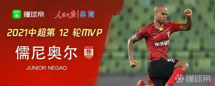 懂球帝 x 人民日报体育 2021赛季中超第12轮MVP:儒尼奥尔 懂球帝中超MVP 懂球帝中超MVP2021-08-08 12:00大家好,欢迎来到懂球帝 x @人民日报体育 中超MVP评选现场。中超第12轮MVP的当选者为长春亚泰前锋儒尼奥尔-内格朗。亚泰与申花的比赛中,儒尼奥尔连场梅开二度,又一次帮助球队逆转取胜,让亚泰继续在赛区积分榜上紧咬领头羊。综合三方投票,他当选本轮MVP,也是连续两轮获此殊荣。儒尼奥尔精彩表现投票比例编辑部意见其他四位获提名球员本赛季中超MVP回顾展开更多