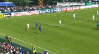 第18分钟,特罗德错失破门良机。后场的长传上来,对方后卫解围失误,皮球落到禁区内无人盯防的特罗德脚下。可惜他面对门将稍显犹豫,最后的打门也被防守球员化解。