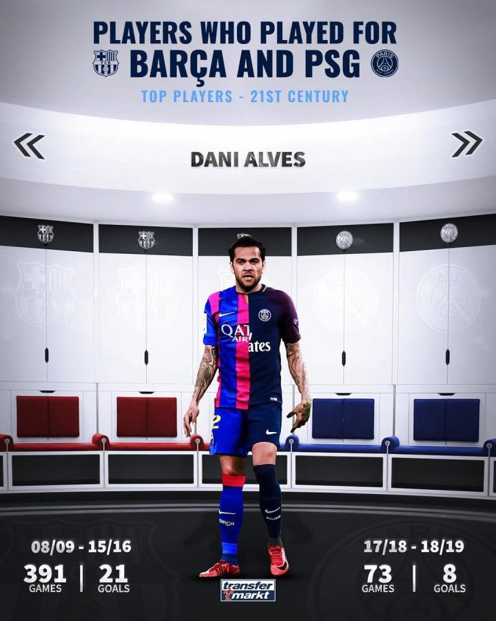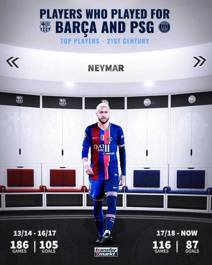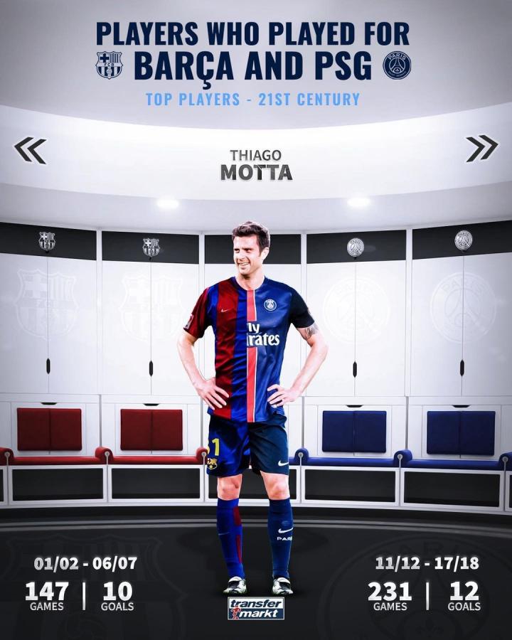 德国媒体“转会市场”盘点了几位21世纪以来曾为巴萨和巴黎都效力过的球员:伊布、内马尔、小罗、阿尔维斯、莫塔,以及刚刚加盟球队的梅西。