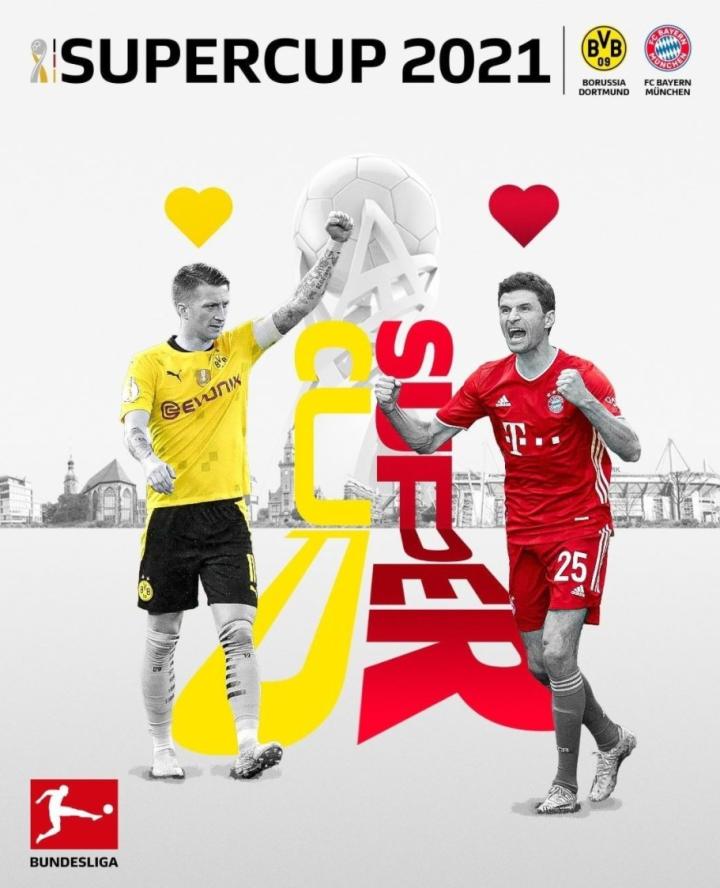 北京时间8月18日凌晨2:30,2021年德国超级杯的争夺将在多特蒙德和拜仁慕尼黑之间展开。在大战打响之际,德甲官方发布了两队的海报。