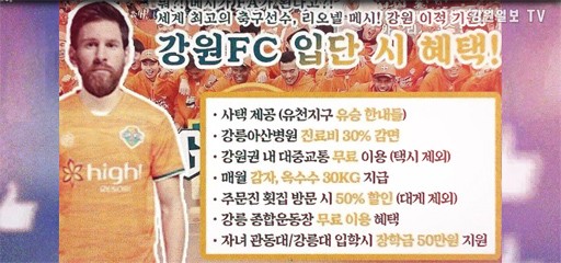 这篇恶搞文在韩国网络走红,而这位网友补充道:“从2009年开始我就是江原球迷,也非常喜欢梅西,他是世界上最好的球员。早知道这篇文章能火,我就加上江陵魅力之夜免费入场了。”