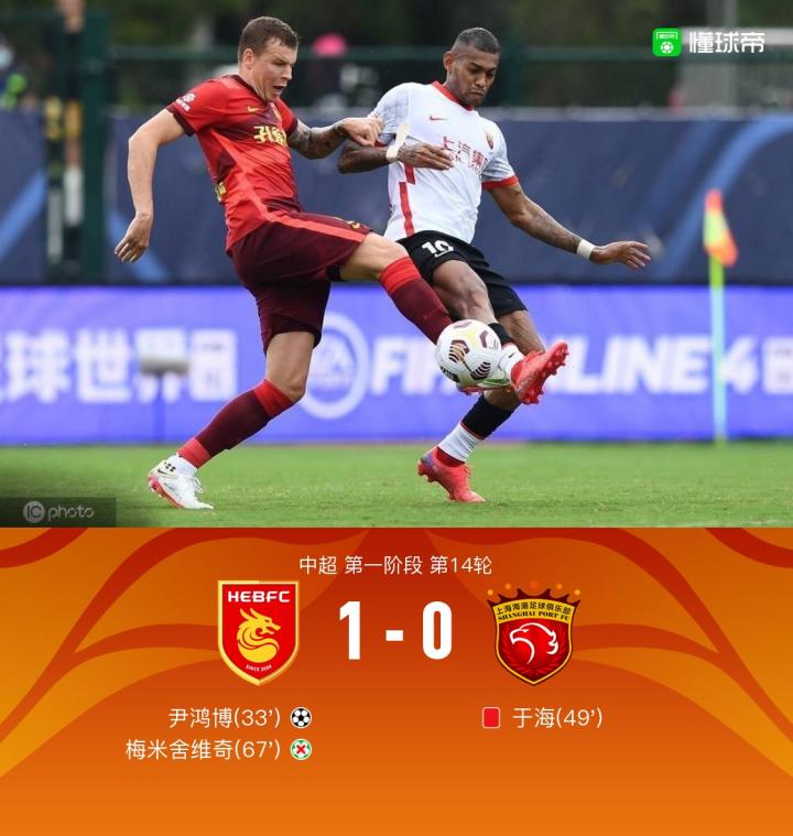 河北1-0十人海港,尹鸿博破门,颜骏凌扑点,于海染红
