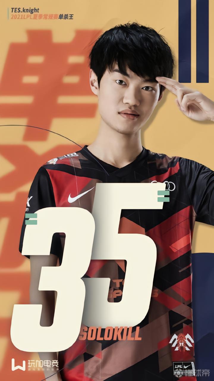 TES的中单选手knight完成了破世界纪录的35次单杀荣膺2021夏季常规赛的单杀王!(赛季单杀次数最高,且登场次数不低于战队总场次的30%)