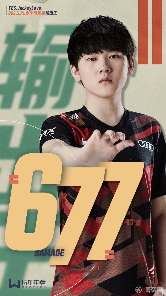 TES的AD选手JackeyLove以677的分均输出荣膺2021夏季常规赛的输出王!(分均伤害最高,且登场次数不低于战队总场次的30%)