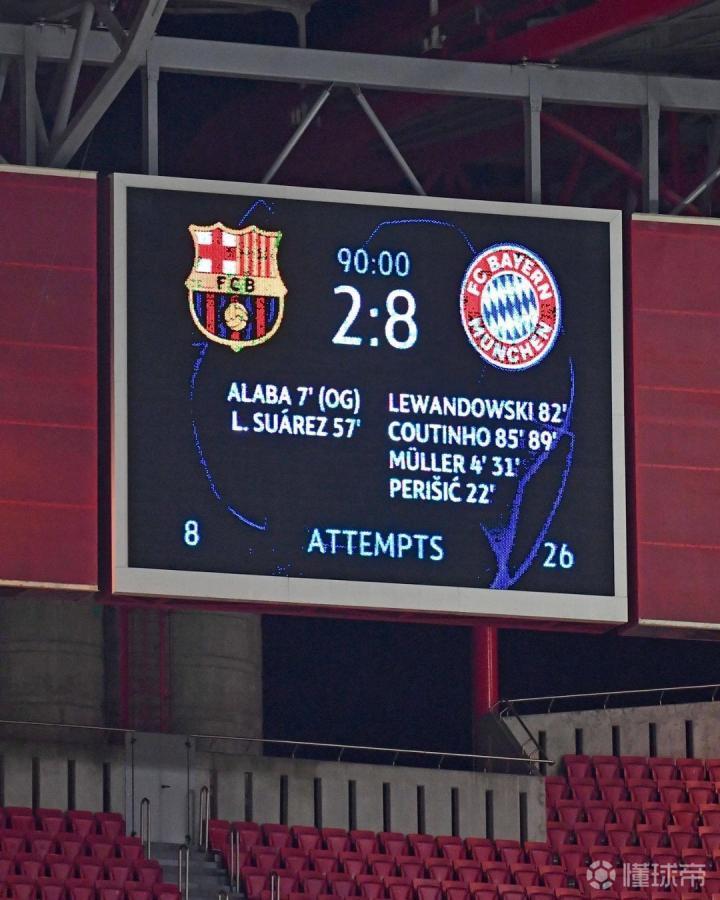 8月14日,拜仁官方晒图,回顾一年前在欧冠1/4决赛中8-2大胜巴萨。