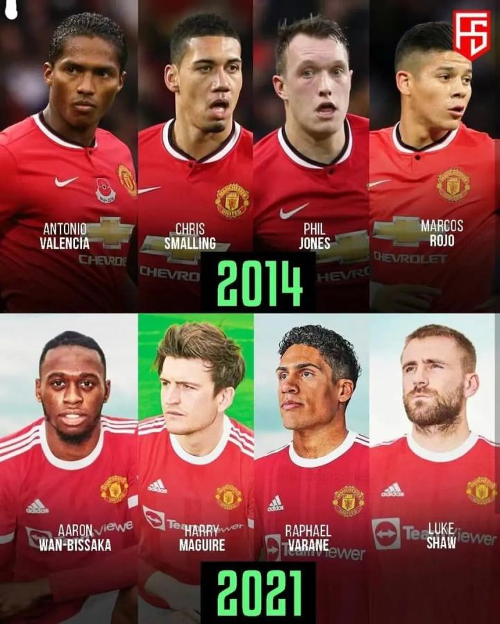 吐槽个球丨曼联后防线7年变化:2014年:瓦伦西...Laoshu @懂球帝2021-08-15 20:39吐槽个球丨曼联后防线7年变化: 2014年:瓦伦西亚、斯莫林、菲尔琼斯、罗霍; 2021年:万-比萨卡、马奎尔、瓦拉内、卢克-肖; 另外,曼联新援瓦拉内本想要4号球衣,但菲尔琼斯拒绝让出。而19号是瓦拉内刚到皇马的号码 。展开更多