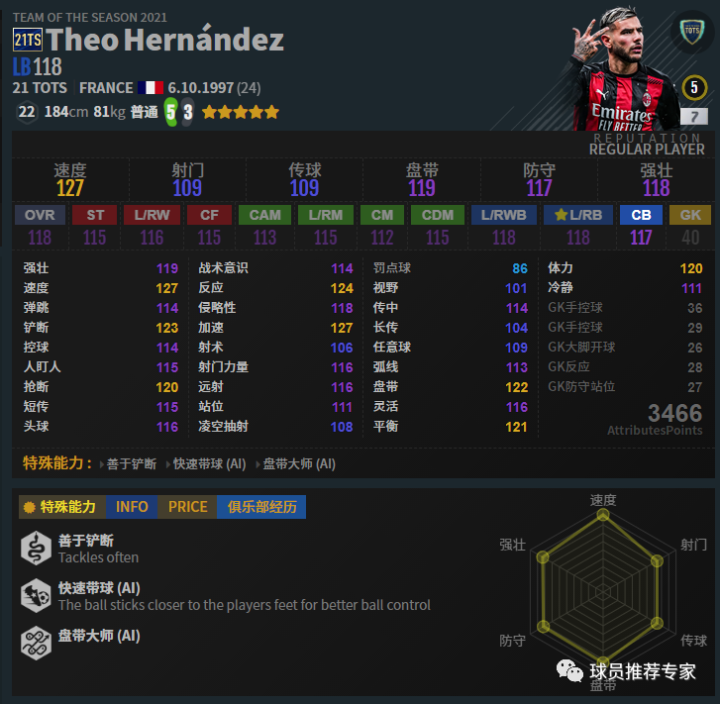 赫南德兹在目前这个直塞版本是非常吃香的,无论是中后卫还是边后卫他都是顶级的存在。回追速度实在太快了,而且灵活在中后卫当作算是非常高的了。184cm的身高和81kg的体重在中卫位置也是合格的。赫南德兹这版本在中卫和边卫都是T0级别的存在,非常推荐!