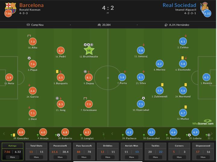 防守端的改善,在比赛的前80分钟里,也是比较可观的,防守落位的速度和积极性,将巴萨的防线由一层窗户纸变成了双层有机玻璃。