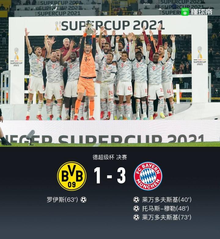 拜仁3-1多特卫冕德国超级杯!莱万梅开二度,罗伊斯世界波