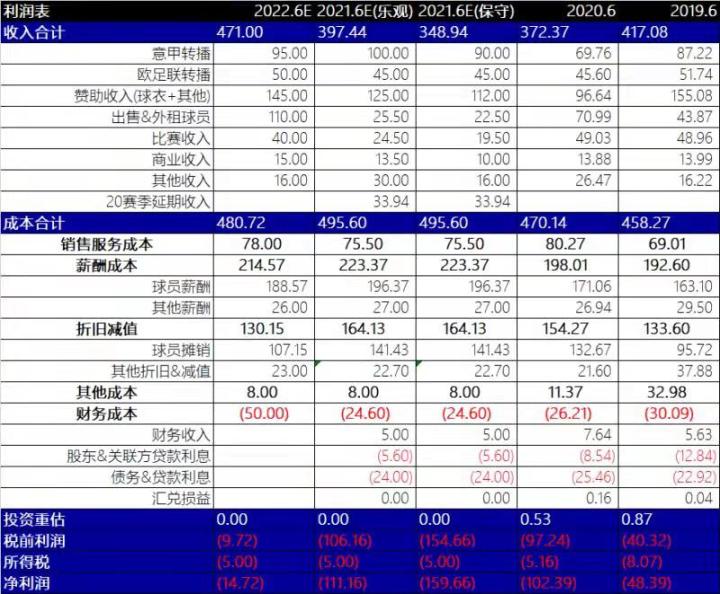 1、20赛季亏损1亿欧,部分是因为疫情因素,但大部分还是因为成本运营成本上升,以及商业赞助开发不顺和欧冠小组赛被淘汰导致的收入增长乏力。21赛季疫情对收入影响更大,运营成本继续上升,预计整个赛季亏损1.1-1.6亿欧。