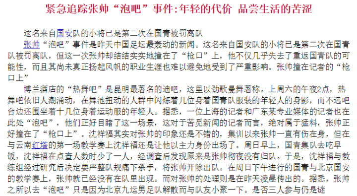 这不是国奥队第一次出事儿,也不是最后一次。1999年,1977年龄段国奥队球员张玉宁、隋东亮和李彦半夜在广州建设六马路“泡吧”。