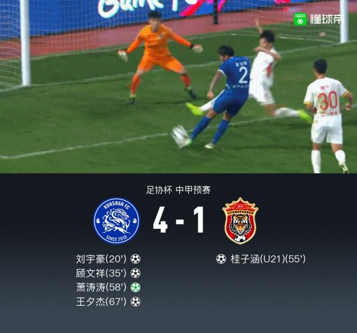足协杯昆山4-1辽宁沈阳城市,萧涛涛点射,刘宇豪传射建功