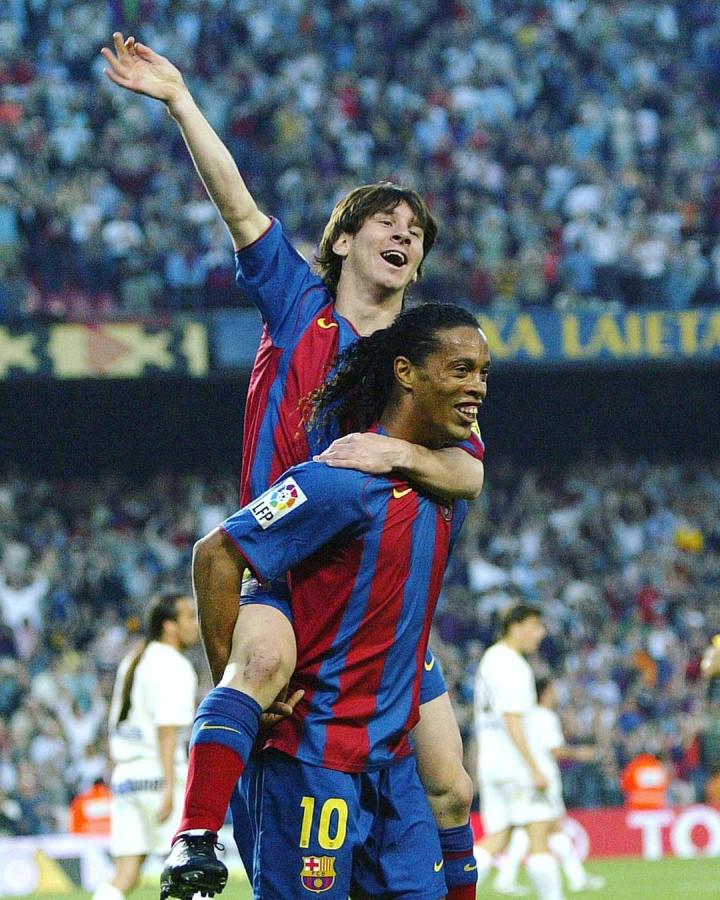 当时的世界足坛,是群魔乱舞的时代,齐达内2000年率法国队在获得98年大力神杯之后,斩获德劳内杯,2002年,又凭借欧冠决赛的“天外飞仙”帮助皇马夺得第9座欧冠奖杯;外星人罗纳尔多2002年世界杯决赛一剑封喉,完成五星巴西的壮举;还有菲戈、内德维德、欧文、小贝……一连串的名字闪耀整个足坛,还有一位,即将迎来职业生涯巅峰的罗纳尔迪尼奥,这个帮助梅西迅速融入一线队,梅西最为敬重的老大哥。