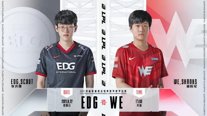 电竞赛事战报英雄联盟2021LPL夏季赛季后赛EDG vs WE,WE 3-2力克EDG,WE拒绝让二追三一穿四晋级胜者组对阵FPX。