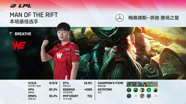 MVP:打出8/0/6完美战绩的WE.BREATHE(船长)