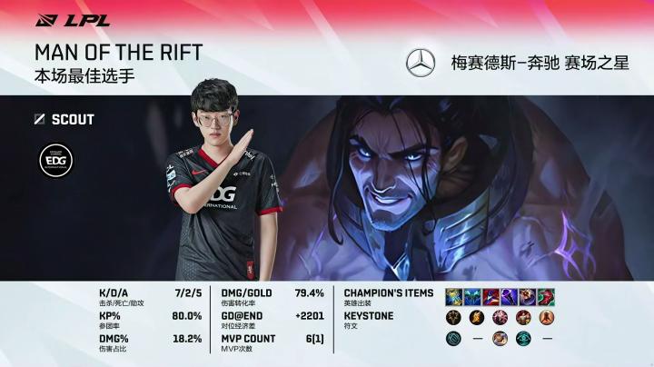MVP:打出7/2/5完美战绩的EDG.SCOUT(塞拉斯)