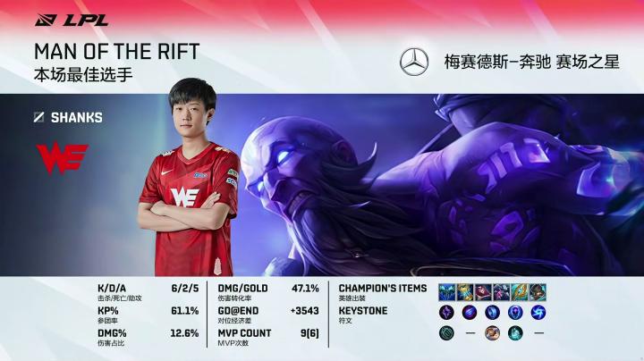 MVP:打出6/2/5完美战绩的WE.SHANKS(瑞兹)