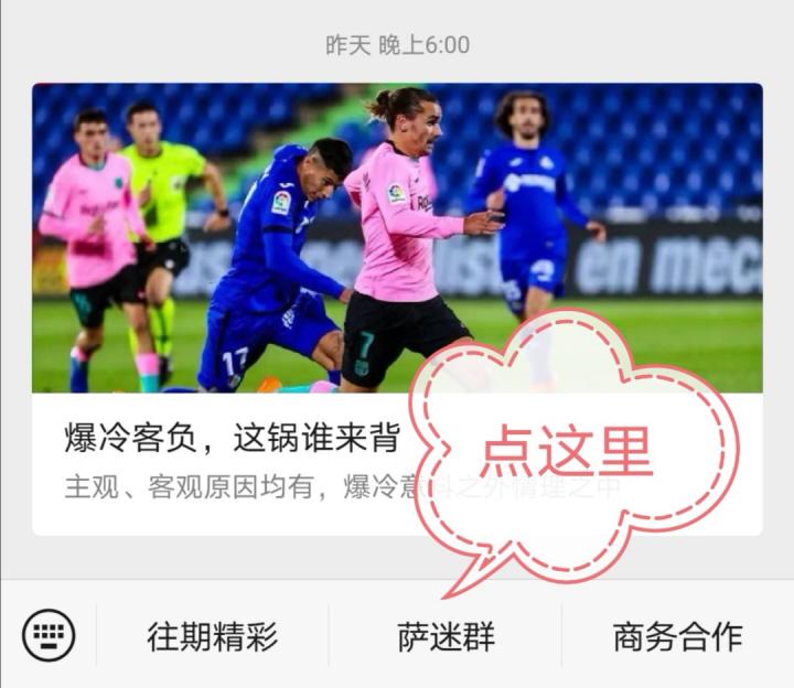 还在担心身边看球聊球的萨迷朋友太少吗?快关注公众号“萨迷之家”,点击下方菜单栏“萨迷群聊”加入我们吧,在这里你可以与来自五湖四海的萨迷们一起以球会友、聊天侃地!