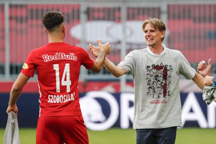 在利弗宁的第二个赛季还没结束,拿出大腿级别表现的索博斯洛伊就被召回萨尔茨堡红牛。当时的红牛主帅正是如今多特蒙德的主教练马尔科·罗泽。而罗泽也成为了索博斯洛伊的伯乐,为其提供大量在一线队比赛的机会。当时索博斯洛伊的出场时间甚至比多特锋霸哈兰德要多得多。