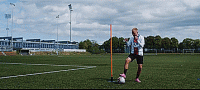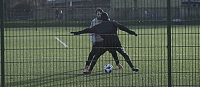 因为当我们这样做的时候,我们的弱势脚就会跟着旋转,这意味着我们只需要用我们的弱势脚抓住球,拉向另一个方向,然后去破门。