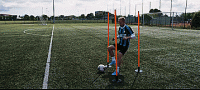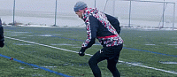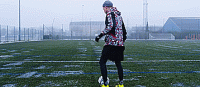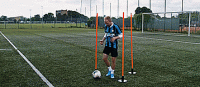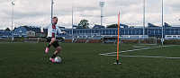 接下来快速用另一只脚的内侧将球触向另一个方向,如果我们做得足够快,我们就有了足够的时间。