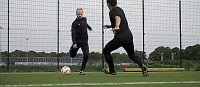 这意味着我们可以向前触球,然后我们伸出惯用脚,用脚底把球停下来,然后用同样的动作把球向后拉。现在当我们向后拉的时候,我们也开始转动上半身朝向我们想要去的方向。
