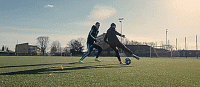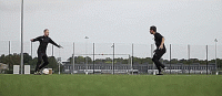 当然,基本技巧绝不能缺少克鲁伊夫转身,所以如果我们还没有形成肌肉记忆,我们可以说这个技巧是由两个动作组合而成的,一个假射门和身后拨球。