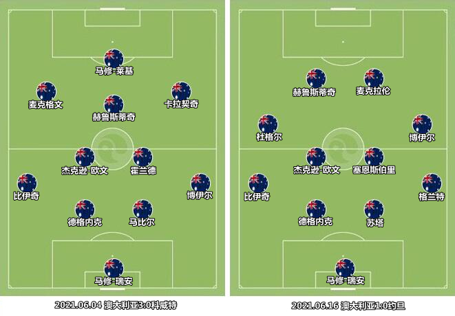 主场击败科威特一役,马修-莱基突前,两翼为卡拉契奇和麦克格文,赫鲁斯蒂奇与杰克逊-欧文、霍兰德构筑中场。