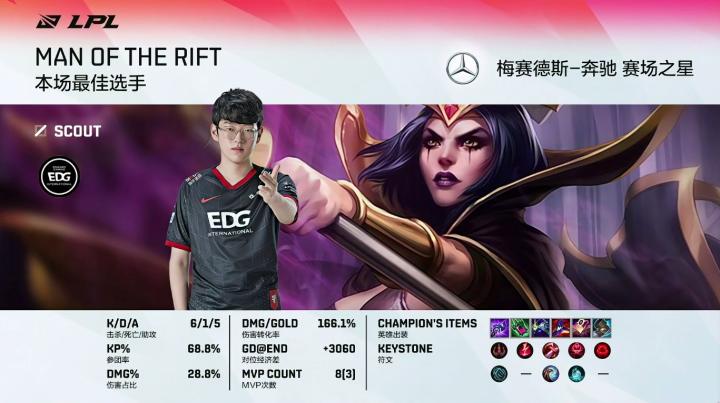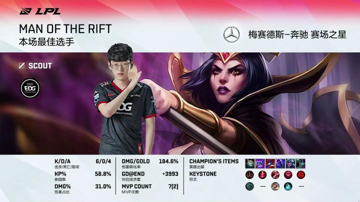 MVP:打出6/0/4完美战绩的EDG.SCOUT(诡术妖姬)