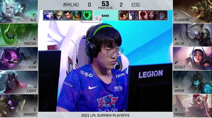 电竞赛事战报英雄联盟2021LPL夏季赛季后赛四强赛败者组LNG vs EDG,LNG 1-3不敌EDG止步四强,Scout输出拉满成功晋级锁定夏季赛前三。