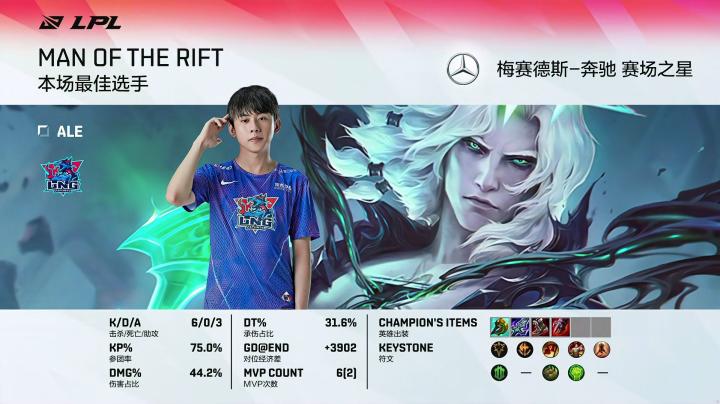 MVP:团战输出拉满收割战场的LNG.ALE(破败之王)