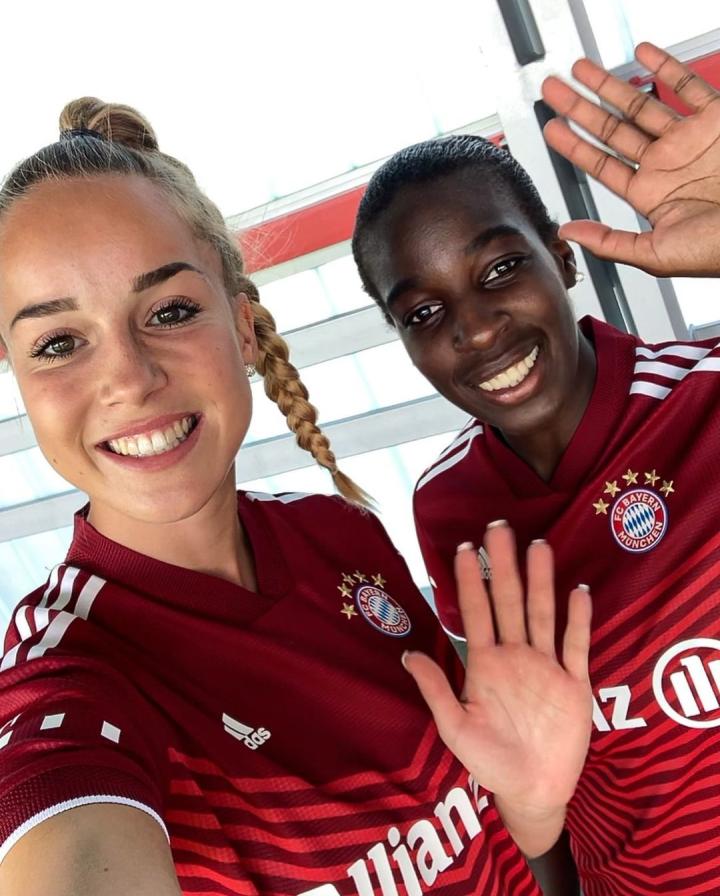 拜仁慕尼黑女足2021/2022赛季全家福 + 部分我仁小姐姐的写真~ 一线队名单: 门将: 1-本卡特 22-格罗斯 33-莱齐希 后卫: 3-熊谷纱希 4-德曼 5-格拉斯 8-拉尔 14-维格斯多蒂尔 19-温宁格 27-黑格林 30-西蒙 中场: 6-贝伦斯坦恩 7-格温 10-达尔曼 12-洛曼 16-马古尔 17-布尔 18-阿塞伊 23-维尔亚姆斯多蒂尔 25-扎德拉齐尔 前锋: 9-达米亚诺维奇 11-许勒 15-鲁德利奇 80-雅各布松